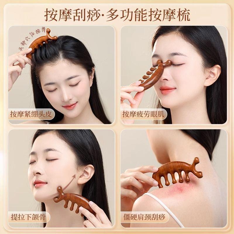 • 檀木经络按摩梳【梵鱼+陀象】共2个