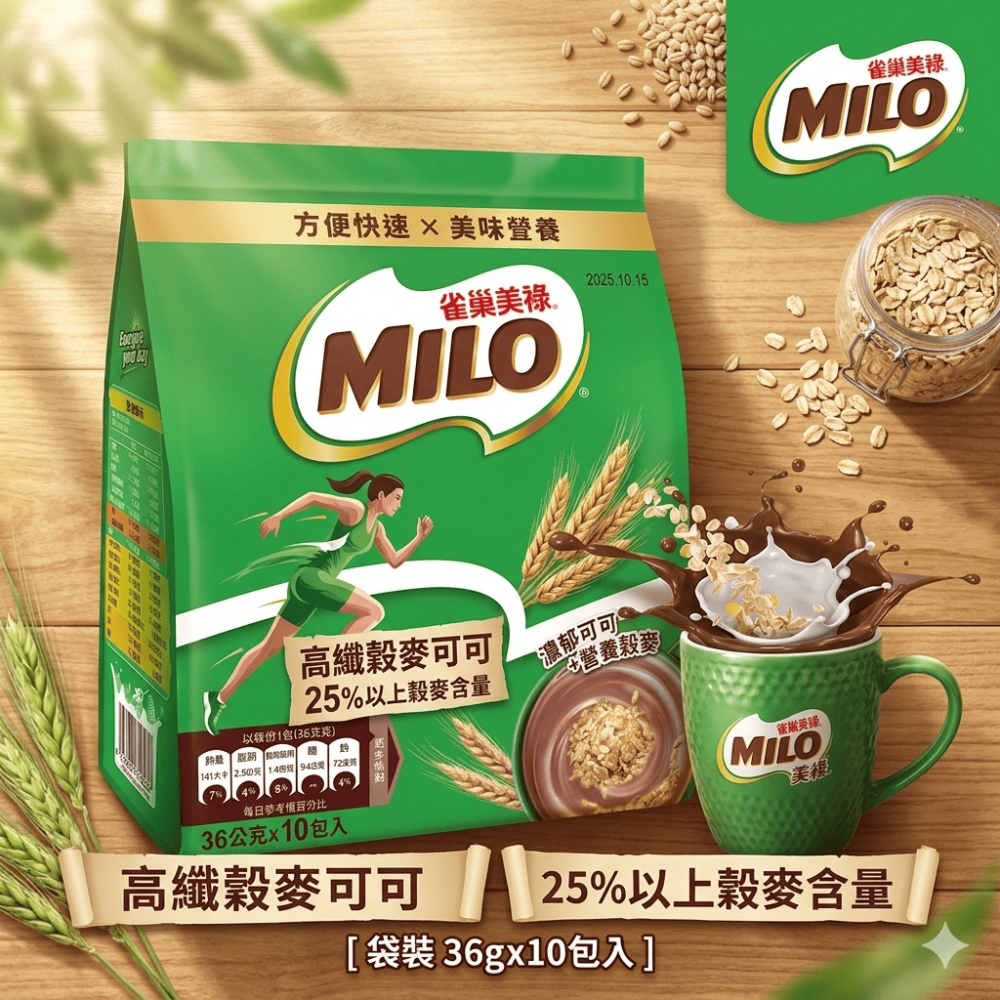商品品名:雀巢美祿 高纖榖麥可可袋裝