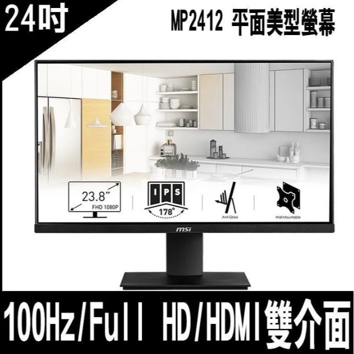 [全新] MSI MP2412 24吋廣視角 VA面板 FHD 寬螢幕@台南可面交@ 1m/s 薄機身 零閃屏 抗藍光