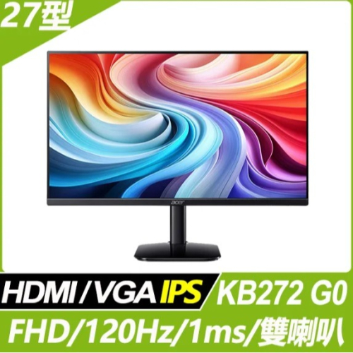 [台南面交]ACER B272 G0 27吋廣視角 IPS面板 FHD寬螢幕@全新@1m/s 120Hz抗藍光 有喇叭