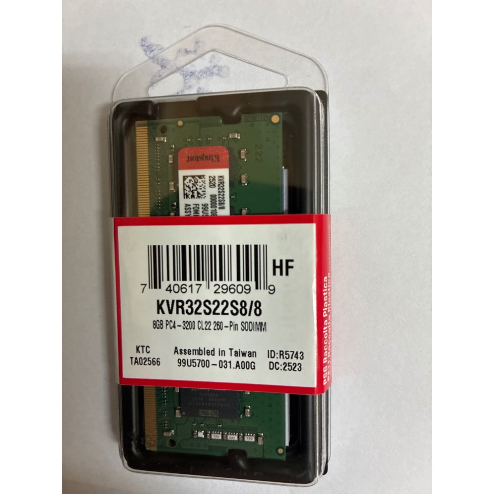 全新 未拆封 [ 議價不回 ] 金士頓 NB 筆電 DDR4 3200 8GB KVR32S22S8/8