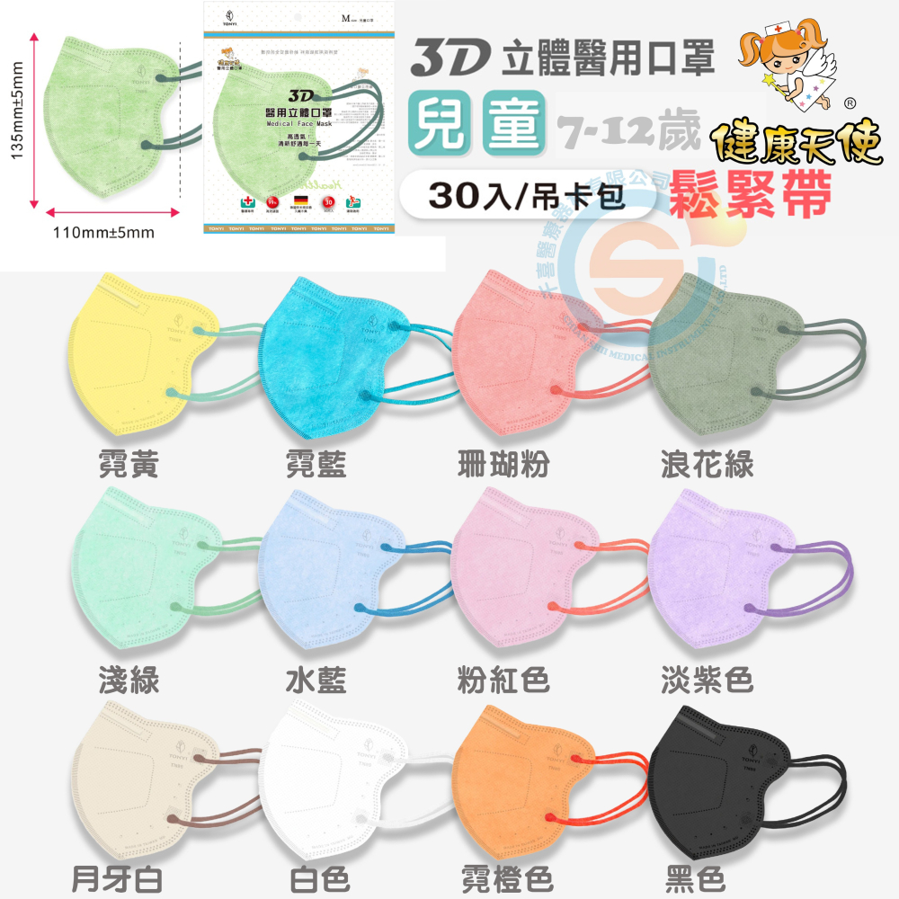 健康天使 3D立體口罩 3D兒童立體醫療口罩 彩色立體口罩 彩色耳繩款 3D耳繩款口罩 台灣製造🇹🇼