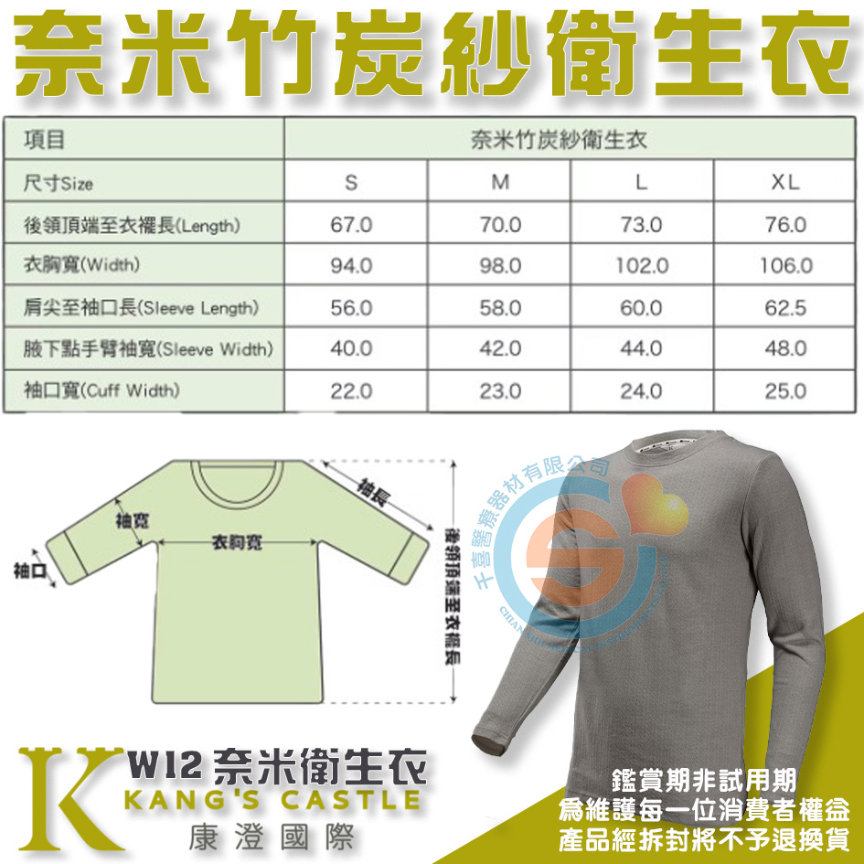 Kcwear 康澄 W12奈米竹炭紗衛生衣 親膚柔軟、吸濕排汗、遠紅外線蓄熱、竹炭紗除臭