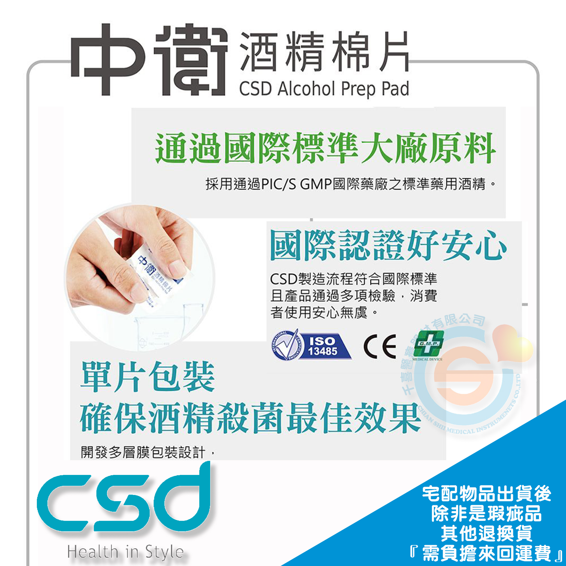 CSD 中衛酒精棉片 75%酒精棉片 國際認證 單片包裝酒精棉片 殺菌效果 藥用酒精 台灣製造