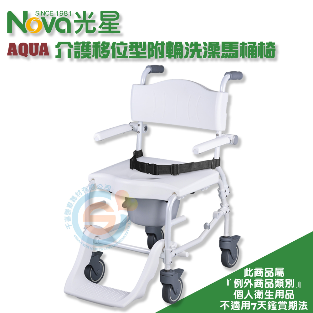 NOVA 光星 AQUA 介護移位型附輪洗澡馬桶椅 附輪便器椅 有輪便器椅 有輪洗澡椅 活動式扶手活動式腳踏 台灣製造