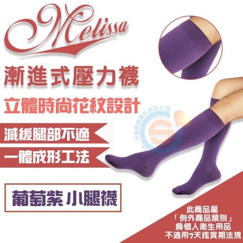 I-M 愛民衛材 Melissa 魅莉莎醫療級時尚彈性襪 漸進式彈性襪 舒適 減壓 防止靜脈曲張 壓力襪-葡萄紫
