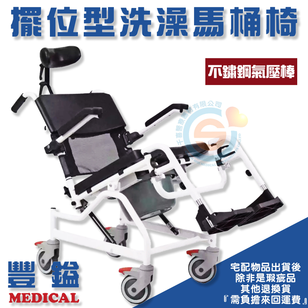 豐鎰 鋁合金有輪仰躺位移洗澡椅 空中傾倒型 擺位型洗澡馬桶椅 有輪洗澡椅 有輪便盆椅 U型兩用座墊 多角度頭枕 透氣網布