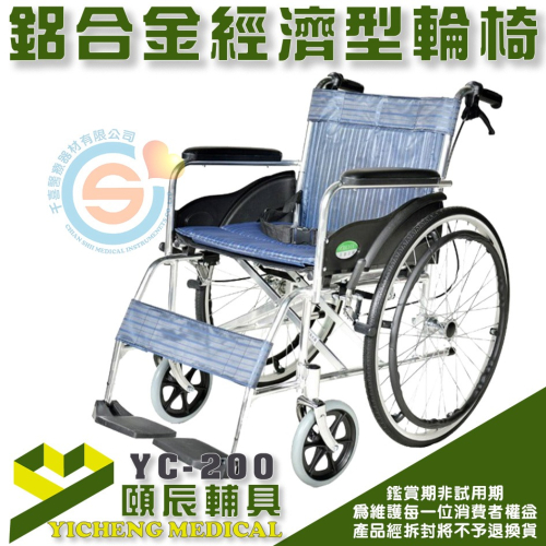 頤辰 YC-200 鋁合金輪椅 透氣雙層坐墊 手動輪椅 輕量化輪椅 經濟型輪椅 經濟型鋁合金輪椅 千喜醫療 折疊輪椅
