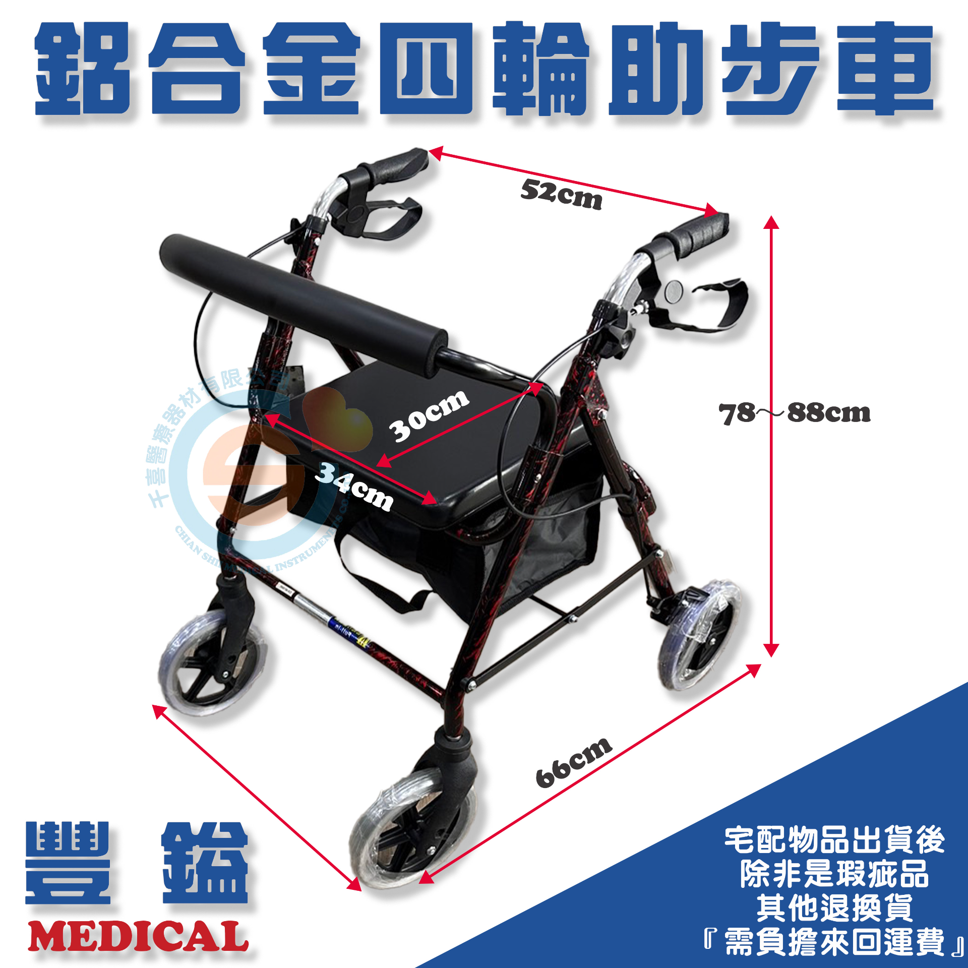 豐鎰 鋁合金四輪助步車 鋁合金散步車 鋁合金買菜車 鋁合金復健車 基本型助步車 基本型散步車 基本型外出推車 老人推車