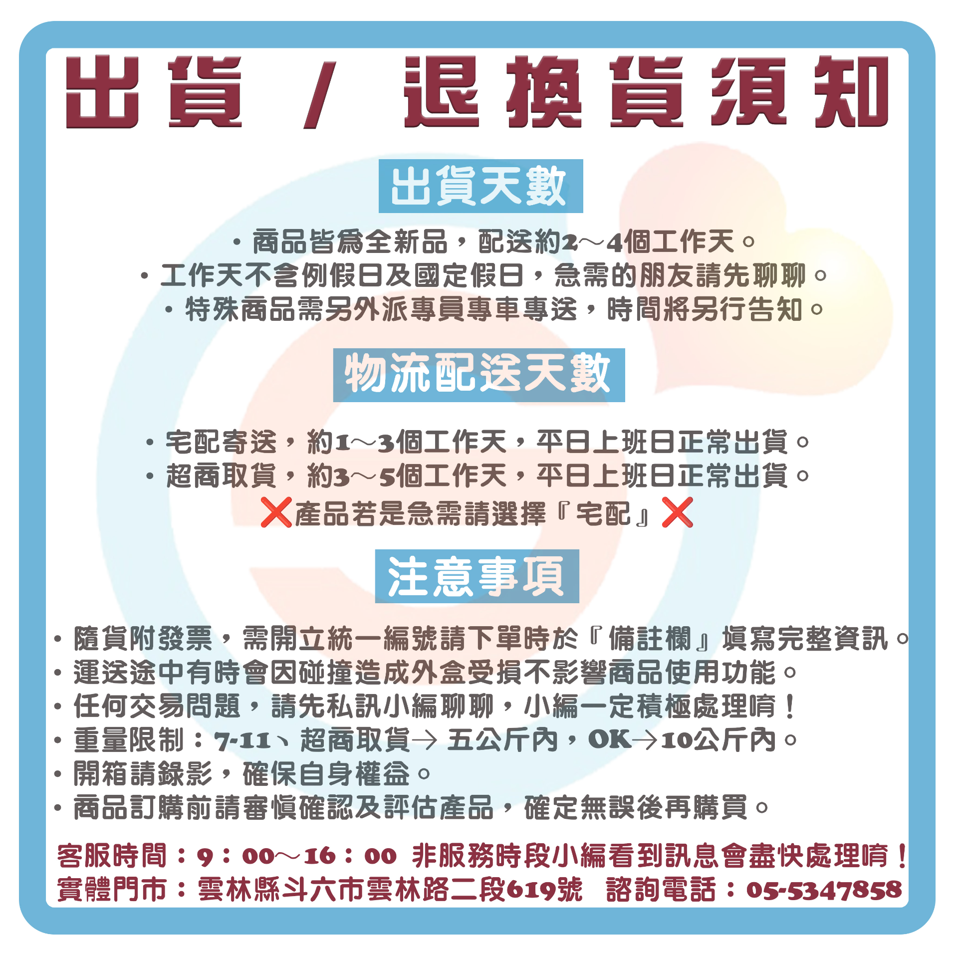 ★如收到產品時發現產品異常或損壞,請拍商品照片,傳至聊聊或來電,小編於服務時間會馬上為您處理。
