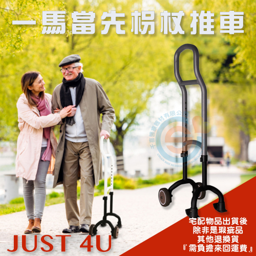 JUST 4U 強生 一馬當先推車 單手柺 單手操作柺杖 單手輔助輪 中風輔具 拐杖推車 手杖推車 助行器替代品台灣製造