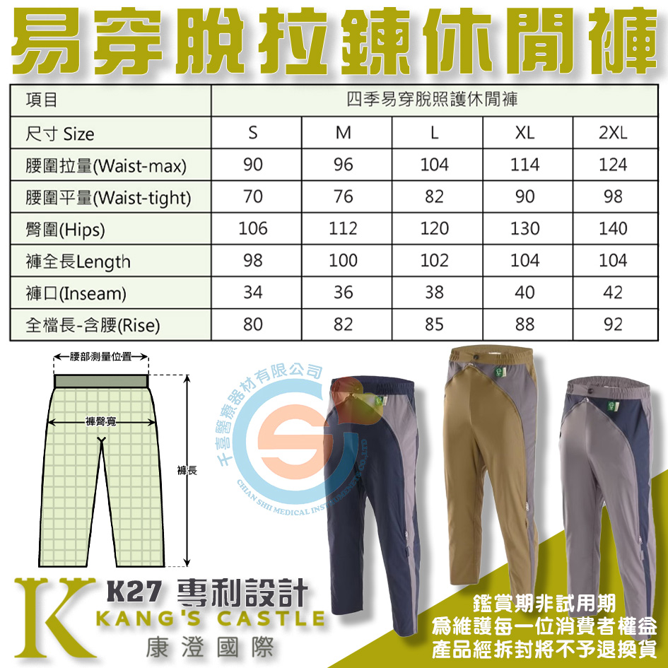 Kcwear 康澄 K27易穿脫四季照護休閒褲(平口褲管) #尿袋褲#造瘘褲#導尿管#紙尿褲#隱藏式尿袋褲#尿管褲