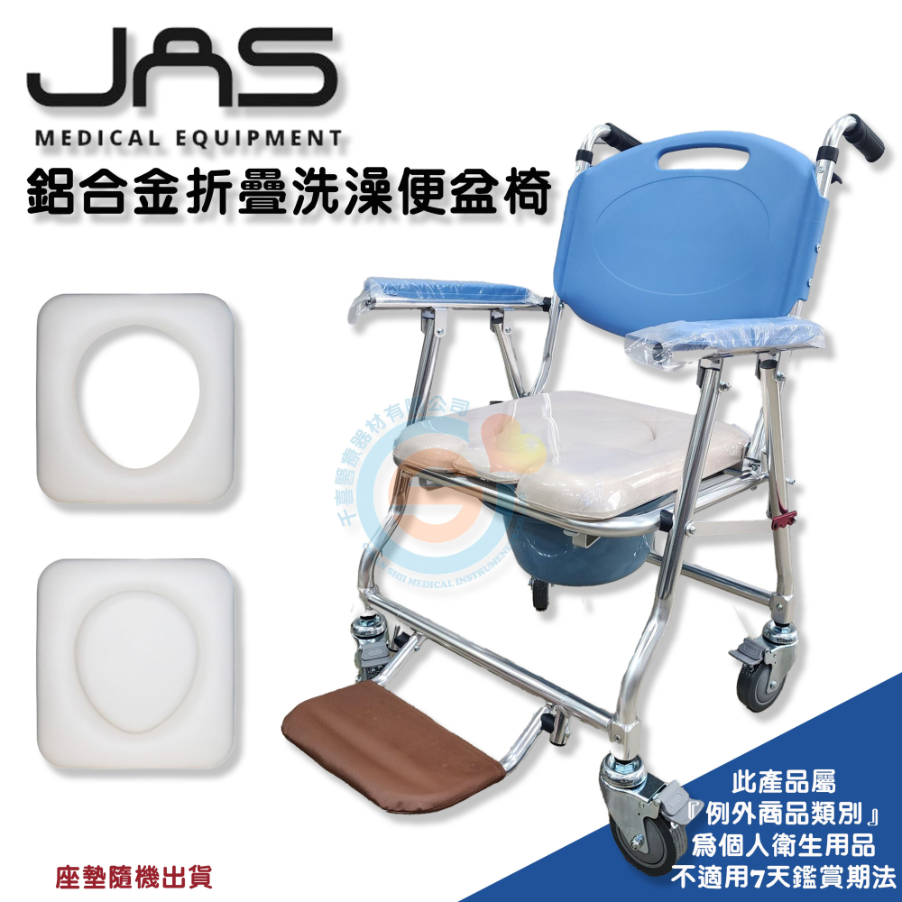 JAS 真安欣 107W4 鋁合金有輪收合便器椅 鋁合金附輪收合洗澡椅 洗澡便盆椅 兩用便盆椅 室內位移 便盆椅 台灣製