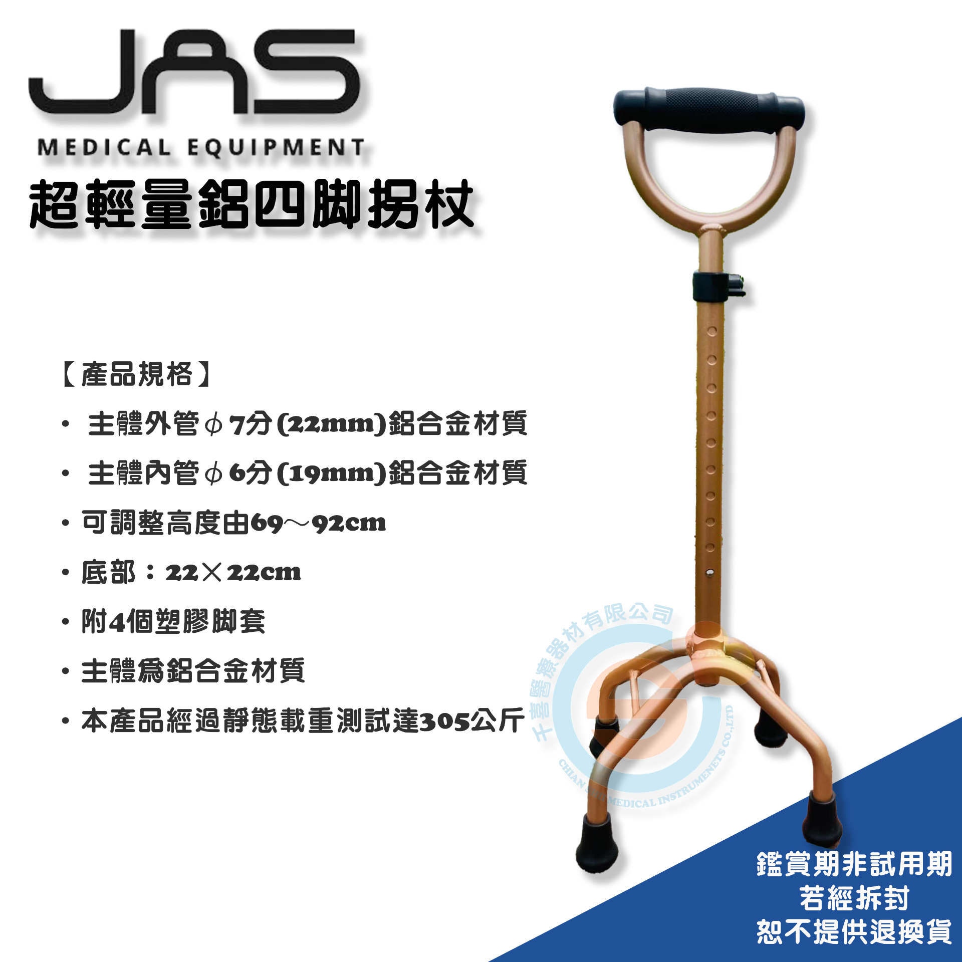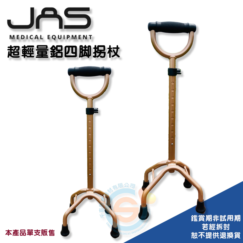 JAS 真安欣 SW02 輕量鋁合金四腳柺 鋁合金單手拐 鋁合金四腳柺 輕量四腳柺 單手柺杖 銀髮輔具