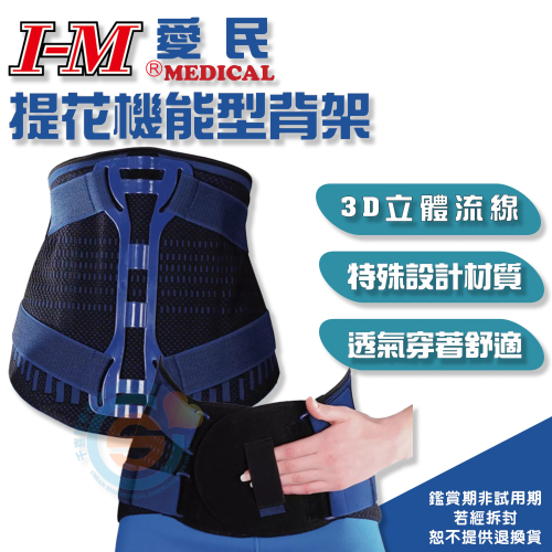 I-M 愛民 FB-518提花機能型背架 護腰 腰部支撐 高科技平針織技術 4路延伸 透氣穿著舒適 台灣製造