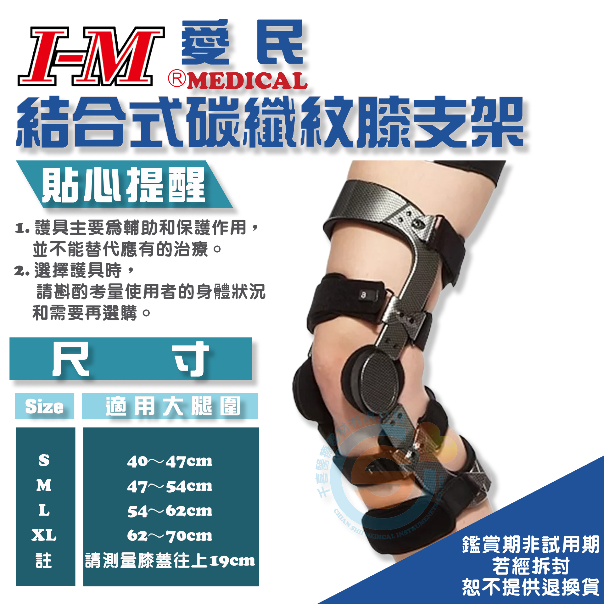 I-M 愛民 OH-736結合式碳纖紋膝支架 輔助支撐 保護及緩解ACL / PCL 四向槓桿 保護膝蓋韌帶 台灣製造