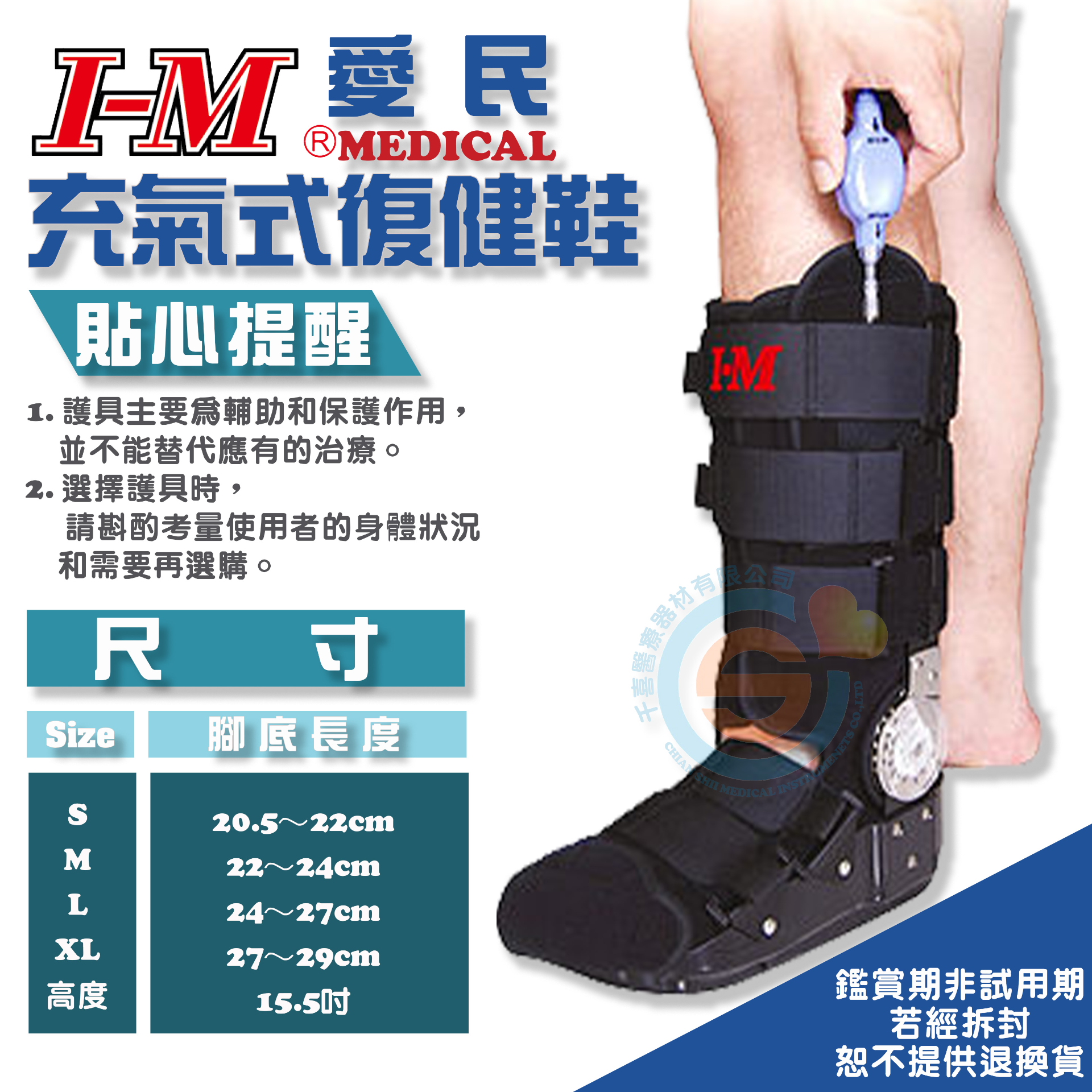 I-M 愛民 OH-929充氣式復健鞋 固定術後或骨折的腳 調整式樞紐 可活動式的鞋底 充氣式襯墊 醫療護具 台灣製造
