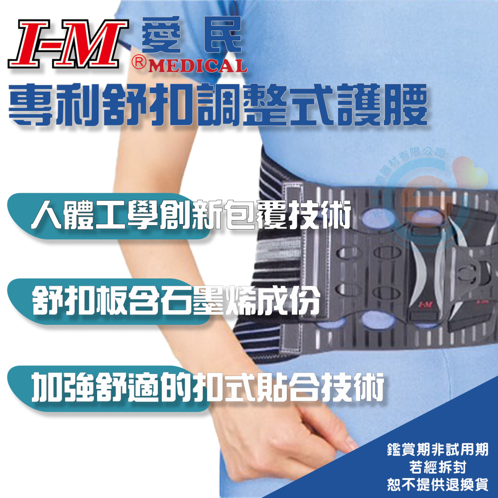 I-M 愛民 WB-704舒扣9'' 調整式護腰 符合人體工學 石墨烯成份 透氣舒適材質 背部支撐 醫療護具 台灣製造