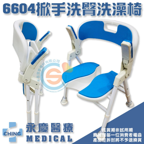 CHING 永慶 CA-6604 舒背洗澡椅 鋁合金折疊洗澡椅 鋁合金扶手可掀洗澡椅 洗臀椅 輕量洗澡椅 收合式洗澡椅