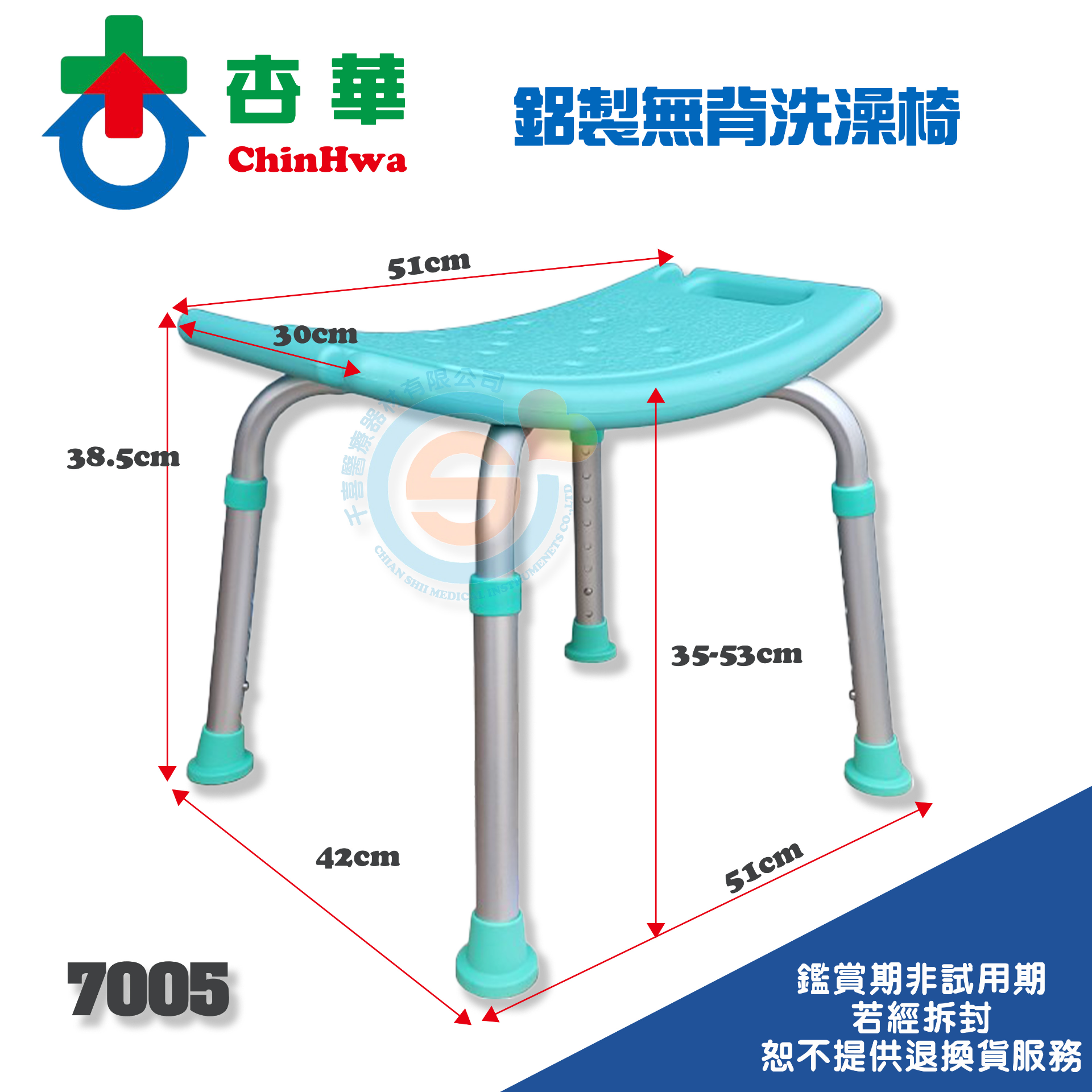 ChinHwa 杏華 7005 7006 鋁合金無靠背洗澡椅 鋁合金有背洗澡椅 鋁合金可調高度洗澡椅 鋁合金沐浴椅