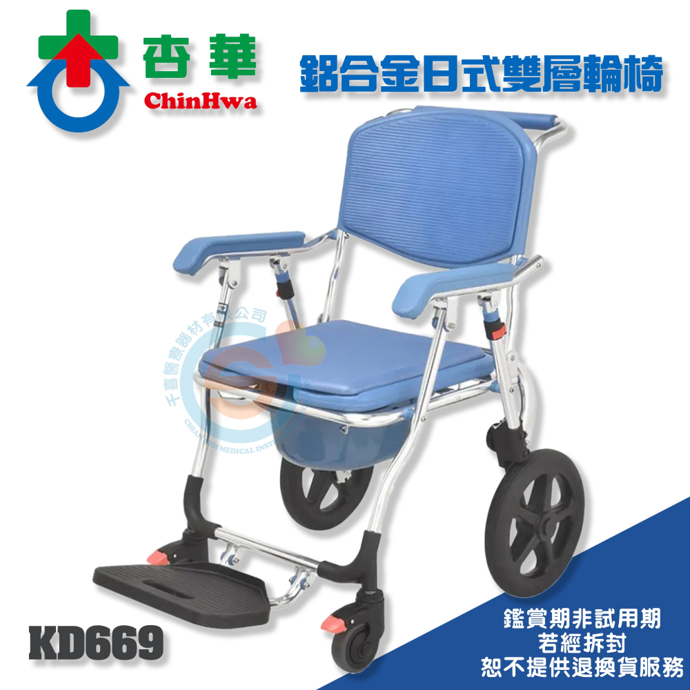ChinHwa 杏華 KD669鋁製附輪收合便椅 鋁合金便器椅 有輪便器椅 可收合便器椅 可推至馬桶上使用 大輪便器椅