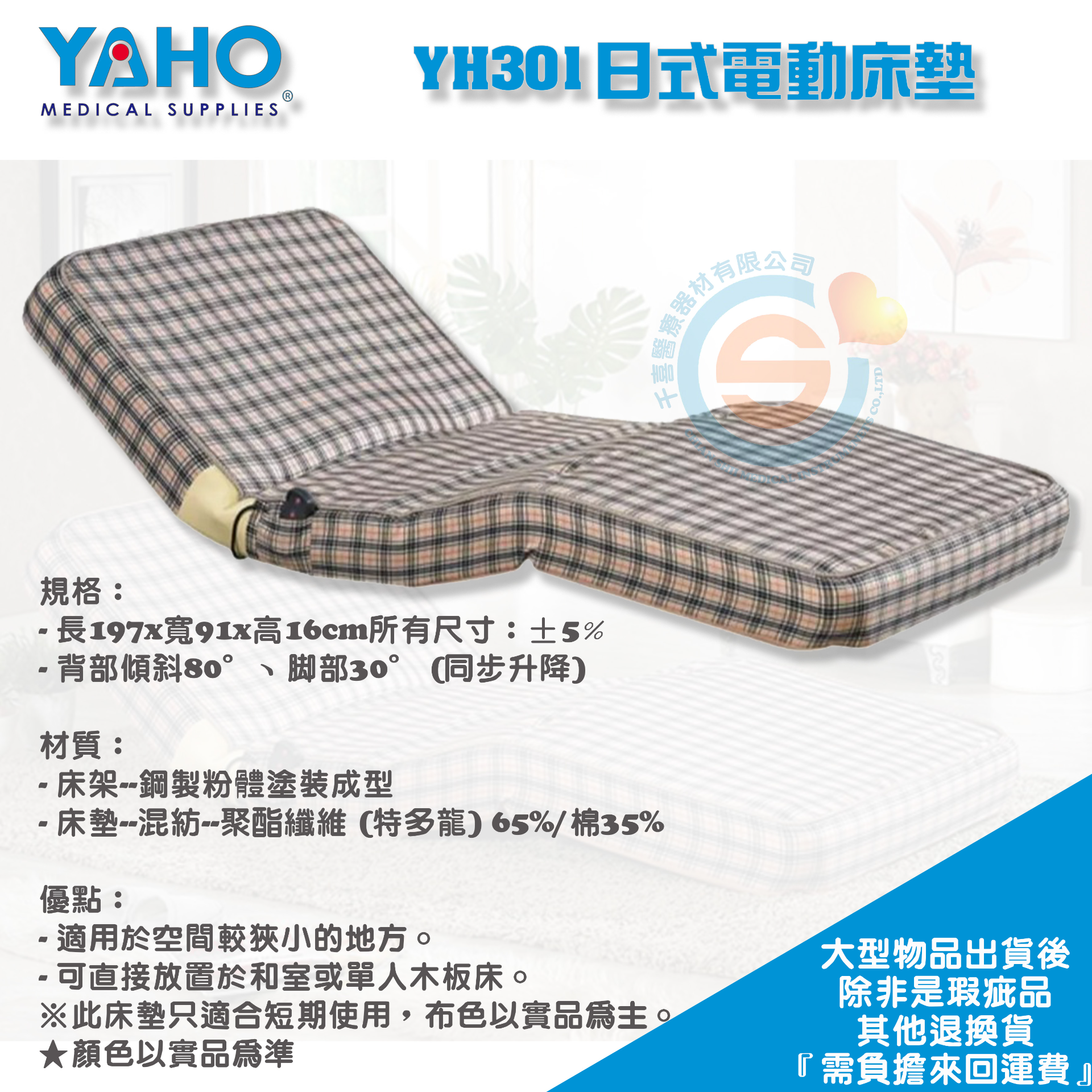 YAHO 耀宏 YH301 日式電動床墊 可調整病床 電動床 護理床 居家照顧床 起身床墊