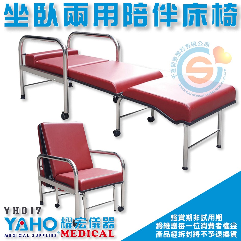 YAHO 耀宏 YH017 YH017-1 坐臥兩用陪伴床椅 一般型 加寬型加大不鏽鋼 陪伴椅 陪伴床 台灣製造