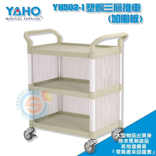 YAHO 耀宏 YH502 ABS塑鋼三層推車 附輪 手推車 塑鋼推車 工作車 UD藥車 麻醉車 護理車 垃圾桶 餐車