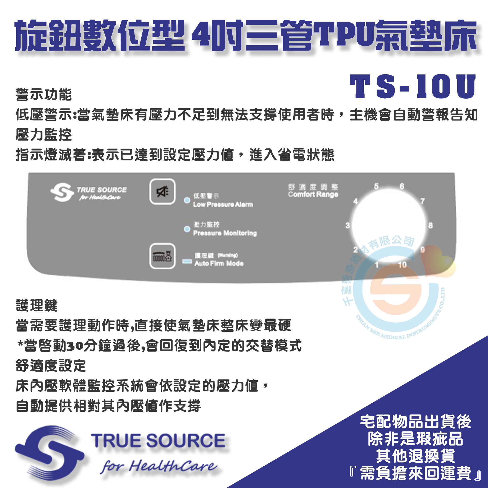 TRUE SOURCE 淳碩 TS-10U 旋鈕數位型 4吋三管純TPU氣墊床 多功能減壓氣墊床 減壓床墊 防褥瘡床墊