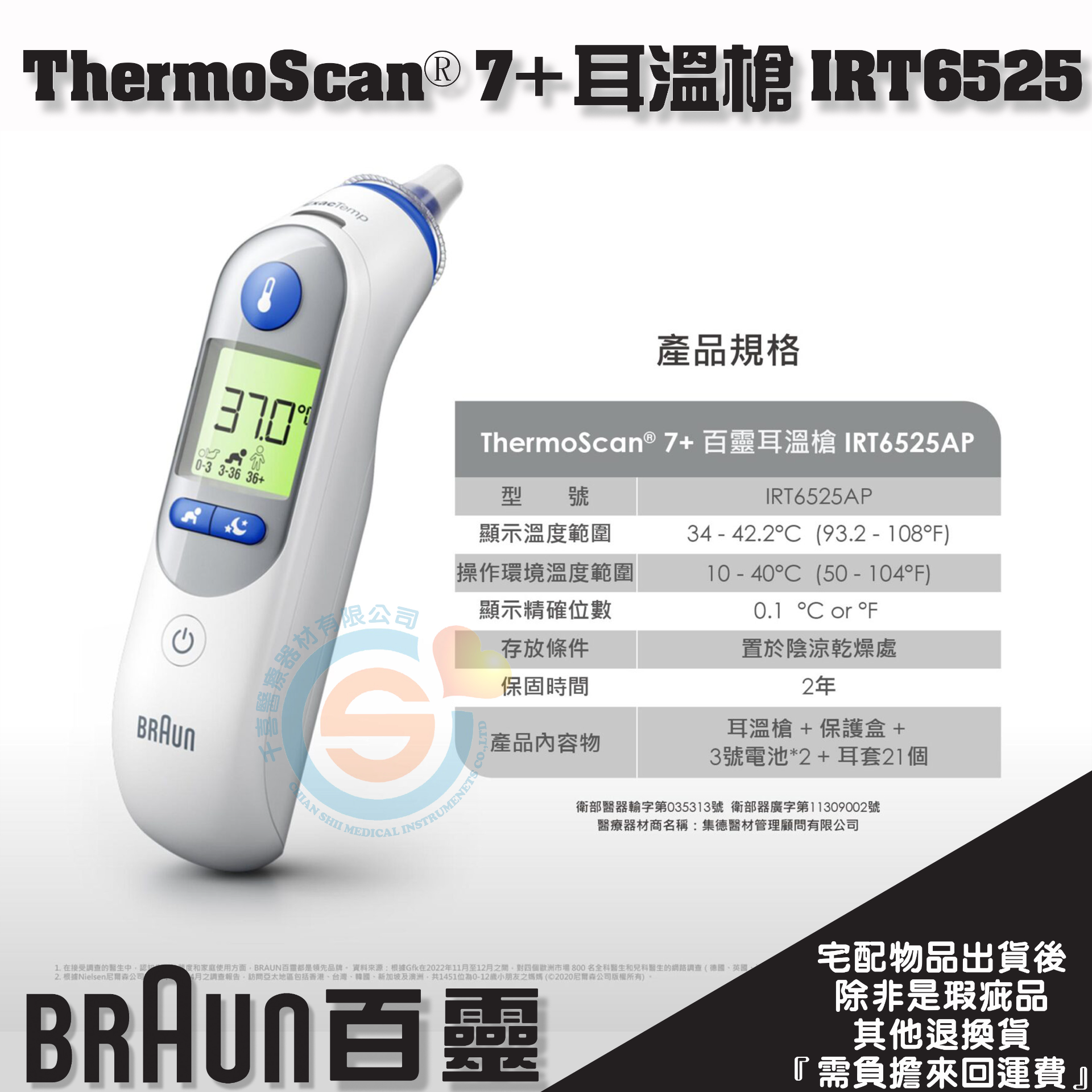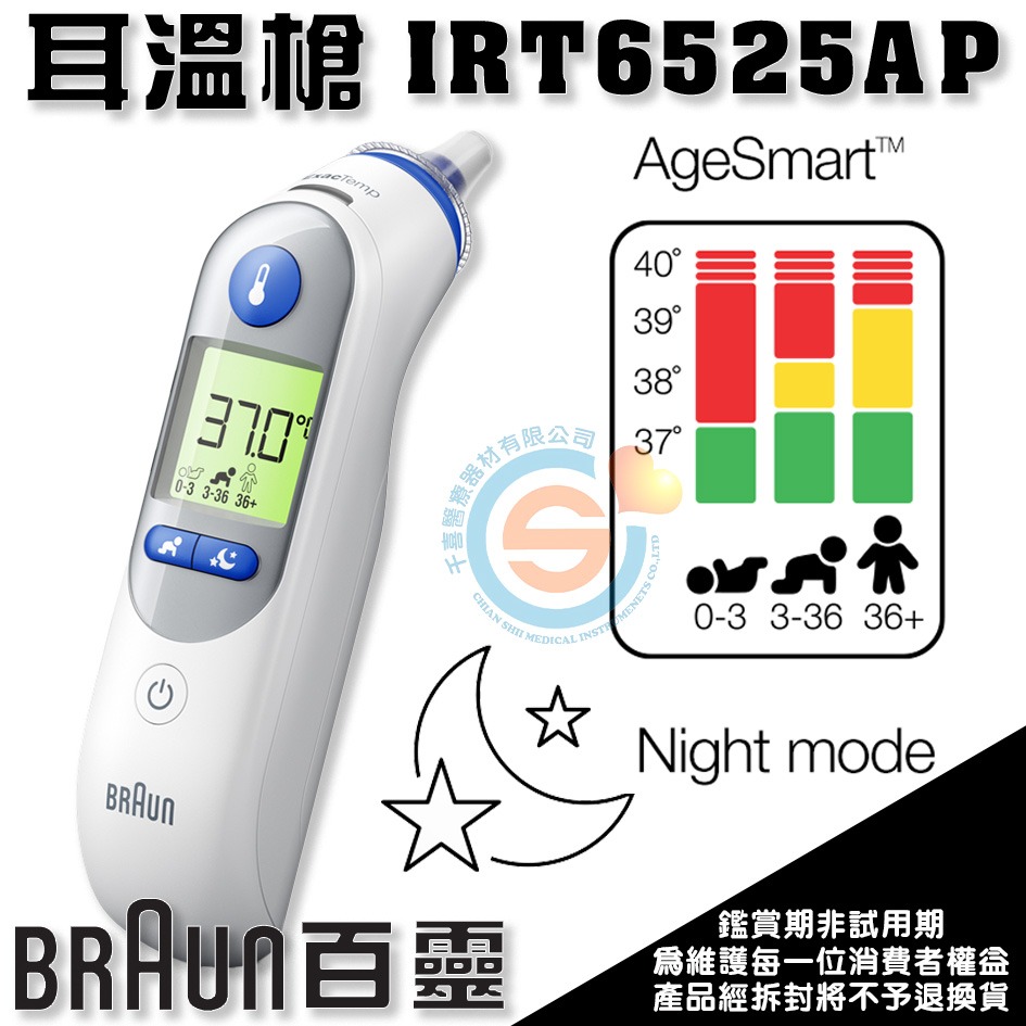 百靈 ThermoScan® 7 耳溫槍 IRT6525 年齡調整 夜間模式 顏色提示 預熱測溫頭 原廠公司貨 實體門市