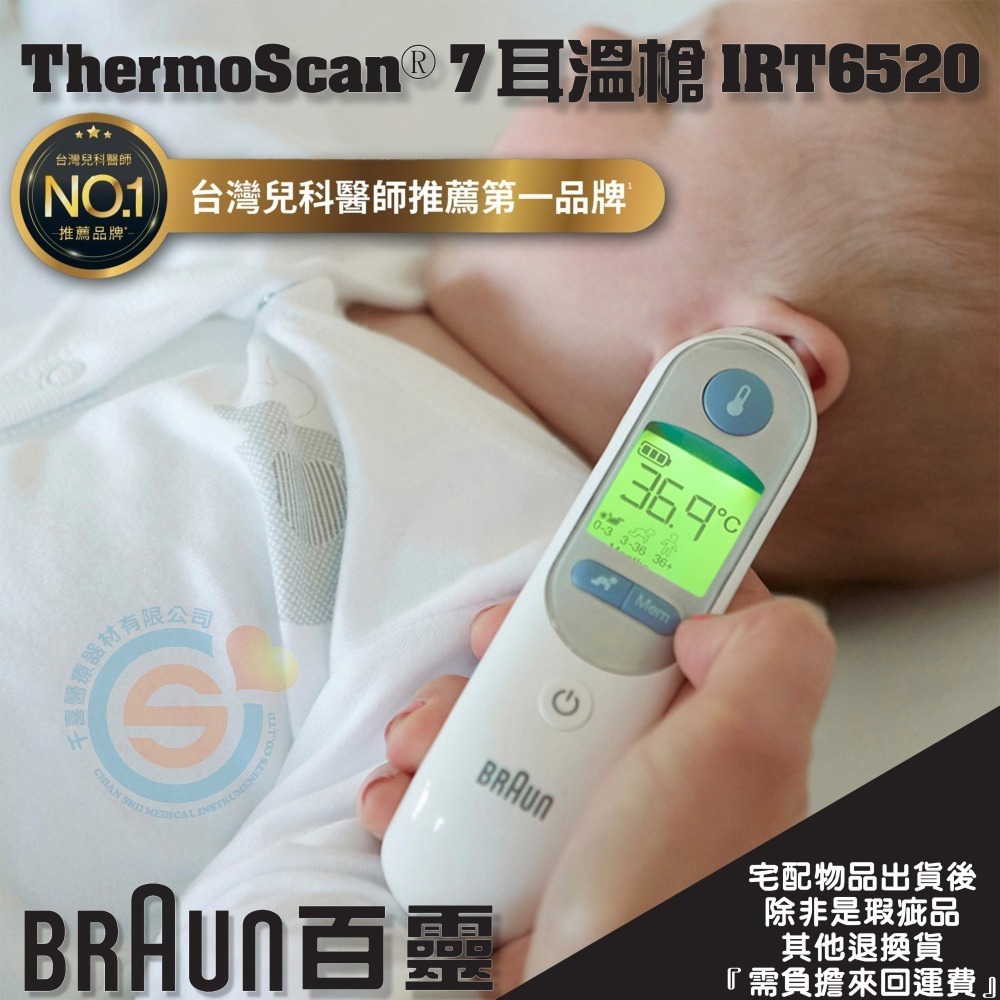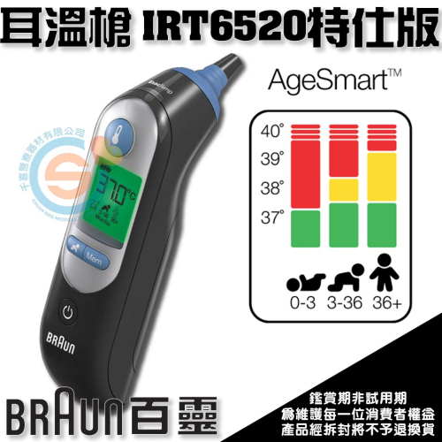 BRAUN 百靈耳溫槍 IRT6520 耳溫槍 彩色背光發燒指示 9組記憶 位置偵測 專利1秒預熱 年齡選擇 原廠公司貨