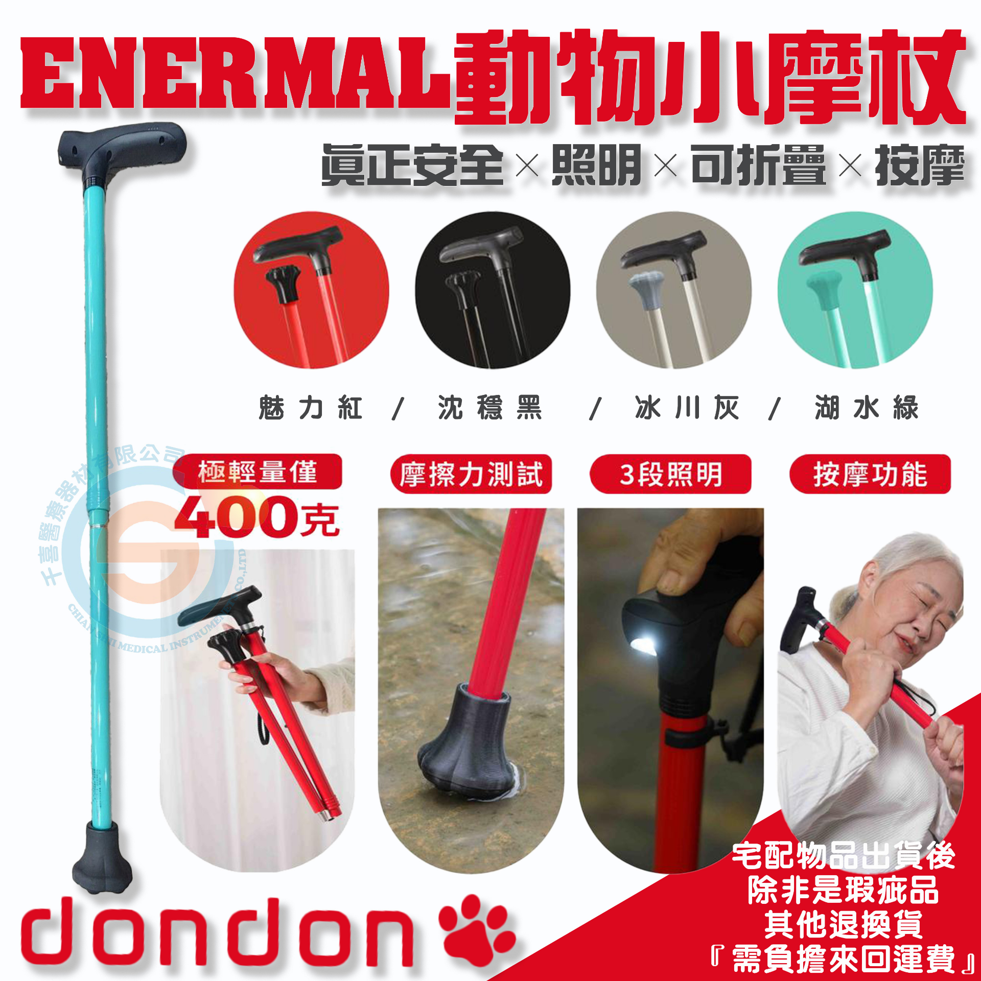 dondon ENERMAL 動物小魔杖 陪伴魔杖 安全柺杖 照明柺杖 可折疊柺杖 安磨柺杖 台灣製造
