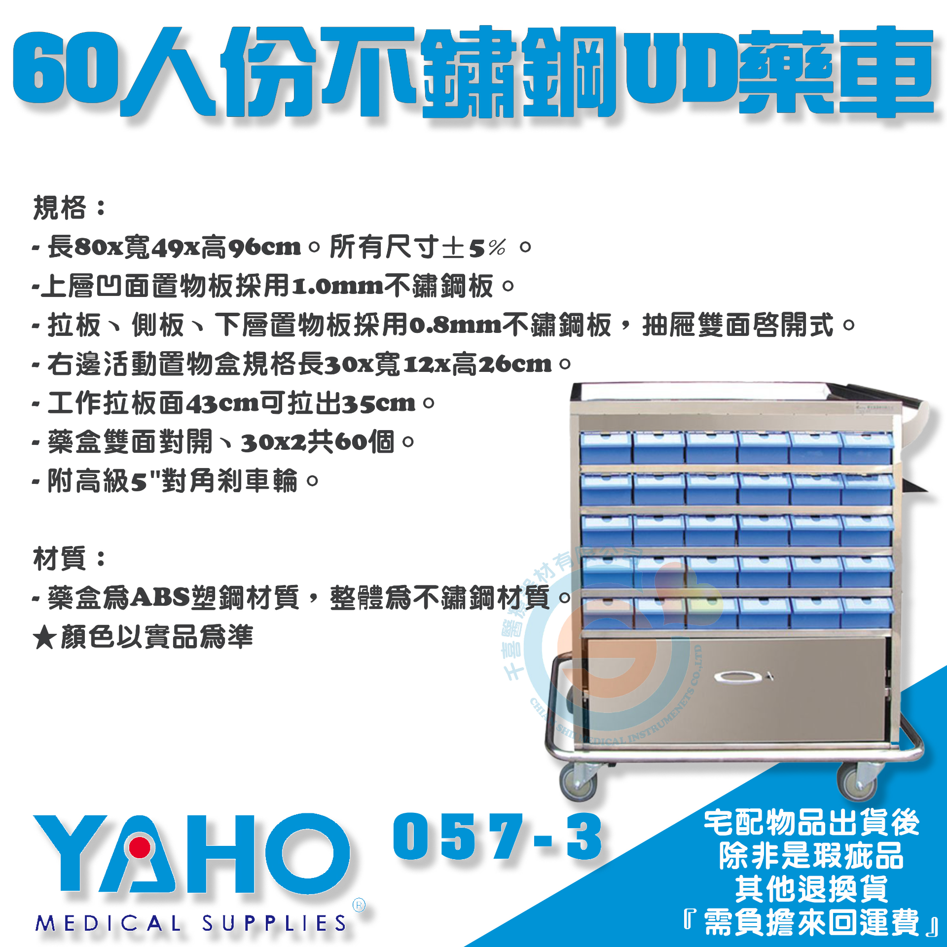 YAHO 耀宏 YH057-3 不鏽鋼UD藥車 (60人份) 不鏽鋼藥車 醫院診所醫療車 醫療推車 醫院 推車