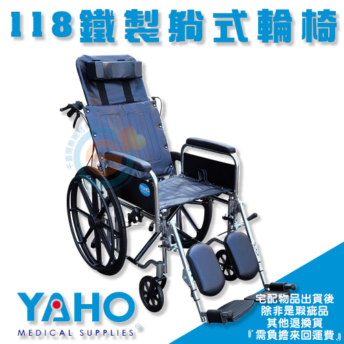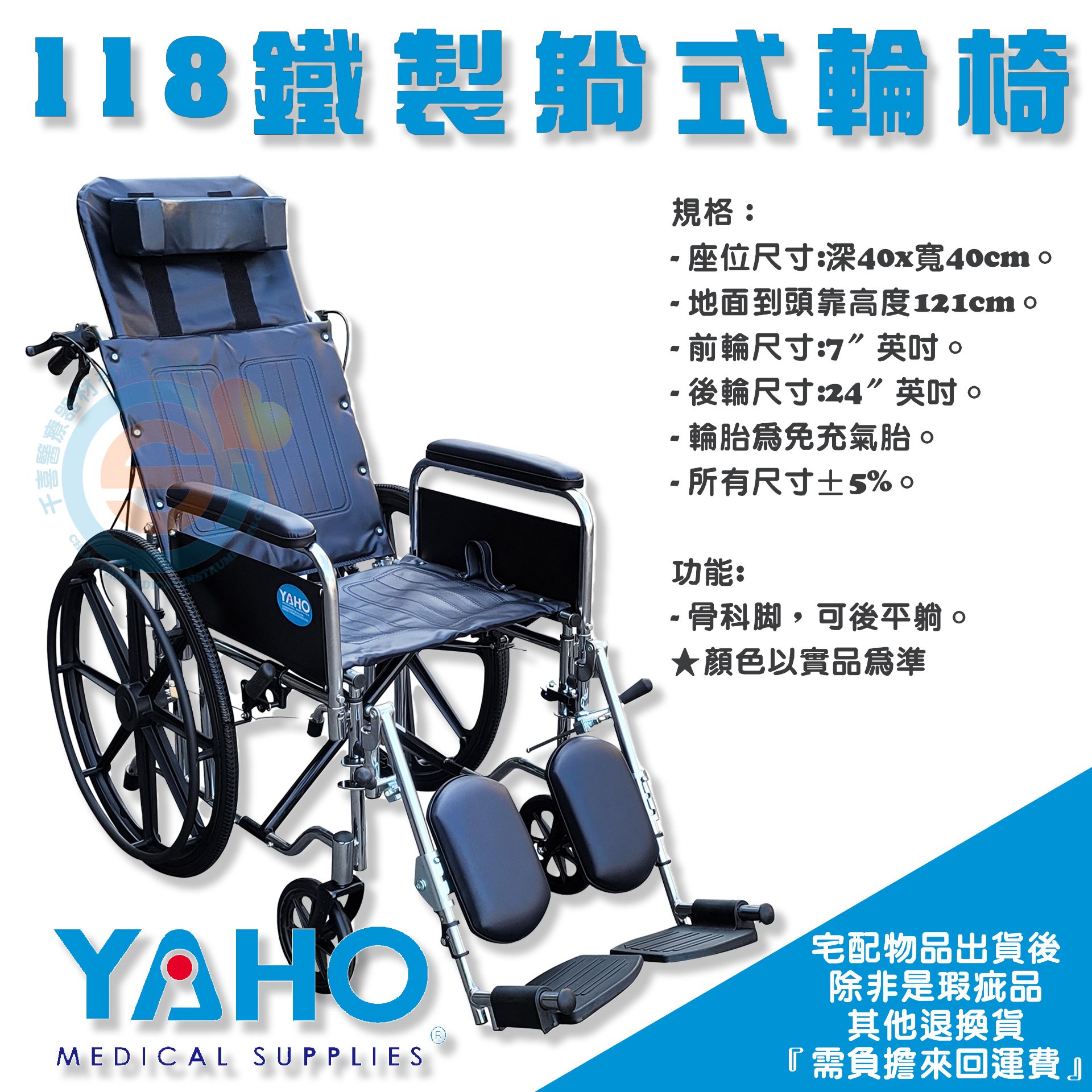 YAHO 耀宏 YH118 鐵製躺式輪椅骨科輪椅 高背輪椅 病房輪椅 鐵製電鍍輪椅 位移型輪椅 捐贈首選輪椅 捐贈輪椅