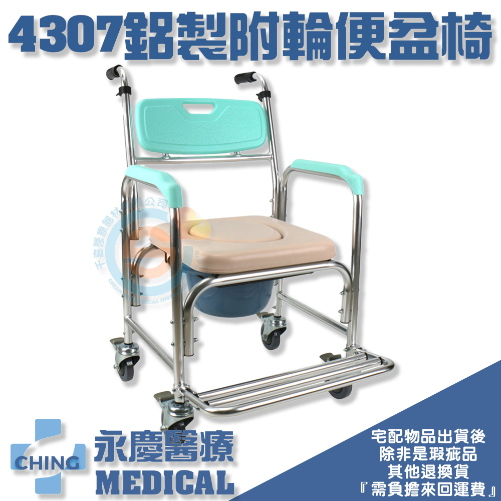 CHING 永慶 NA-4307鋁合金固定有輪硬背便器椅 鋁合金附輪便盆椅 附輪便器椅 鋁合金有輪便器椅 室內位移座椅