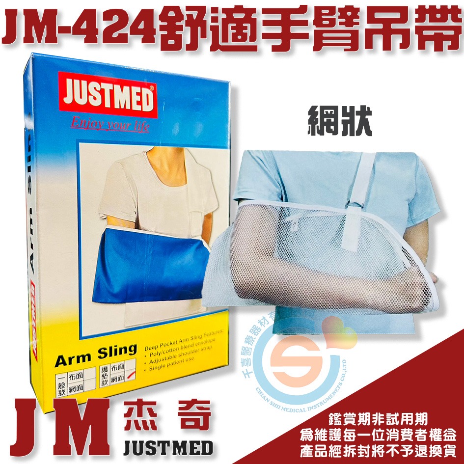 JUSTMED JM 杰奇 JM-424 護墊型手臂吊帶 手臂吊帶 手部脫臼 骨折 打石膏 三角巾 千喜醫療台灣製造