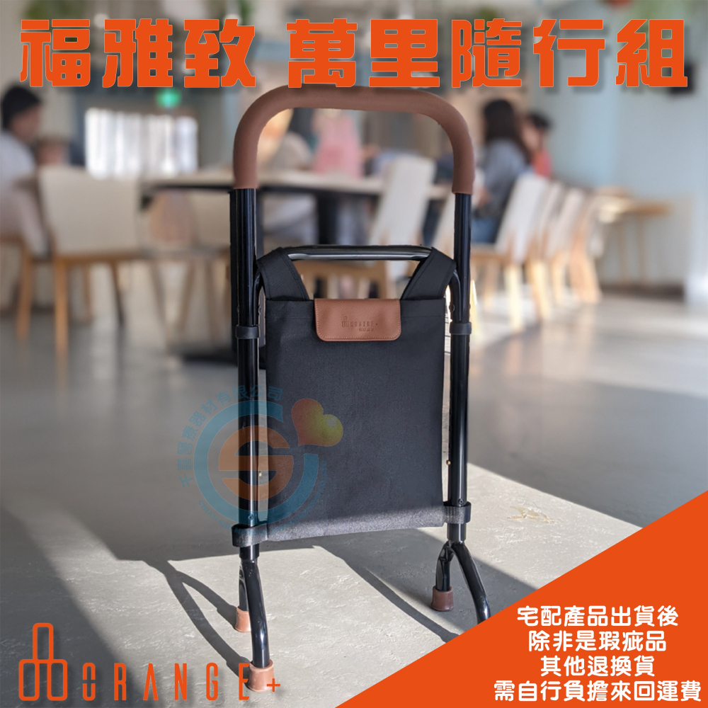 Orange+ 悅康品家 福雅致 萬里隨行組 拐杖 起身扶手 鋁合金手杖 浴室防滑 助步器 多功能四腳柺杖 收納袋