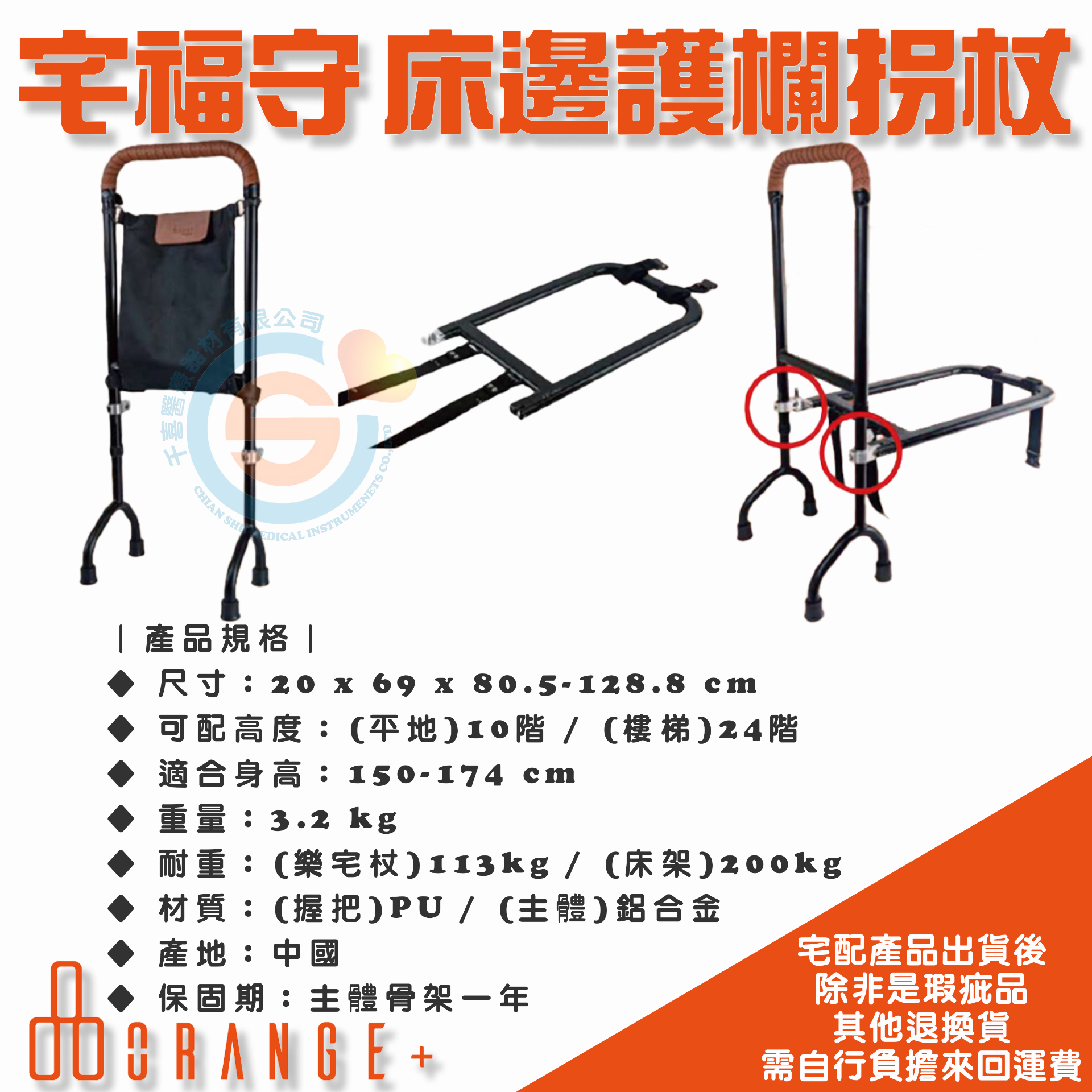 Orange+ 悅康品家 福雅致 宅福守 床邊護欄 起身扶手 室內外拐杖 鋁合金 爬梯柺杖 床邊護欄與行動拐杖 移動扶手