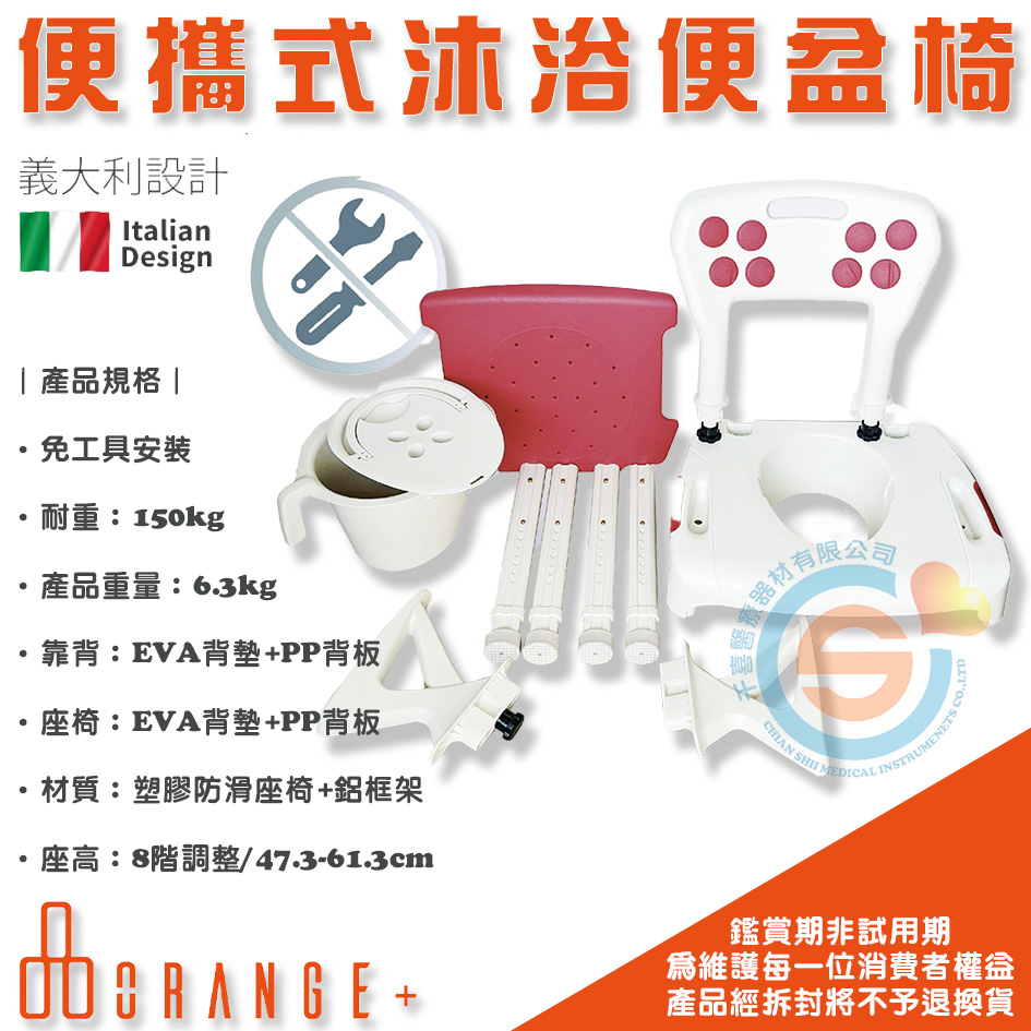 Orange+ 悅康品家 日安 樂齡旅行 便攜式沐浴便盆椅 旅行便盆沐浴椅 三合一洗澡椅 便盆椅 免工具可快速組裝