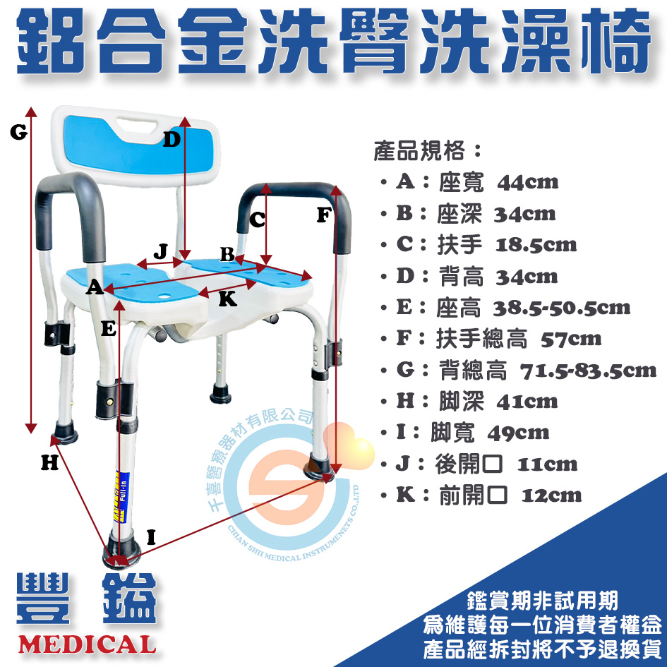豐鎰 鋁合金洗澡椅 鋁合金洗臀椅 凹槽洗澡椅 老人洗澡椅 浴室防滑椅 老人椅 洗澡椅 沐浴椅 防滑椅 扶手可拆洗澡椅