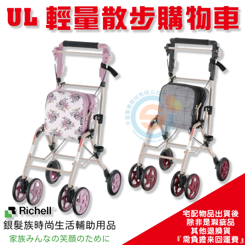 超輕量散步購物車 UL 3WAY腳輪 兩用購物車 兩用散步車 千喜醫療 附坐墊 附置物空間 Richell 利其爾
