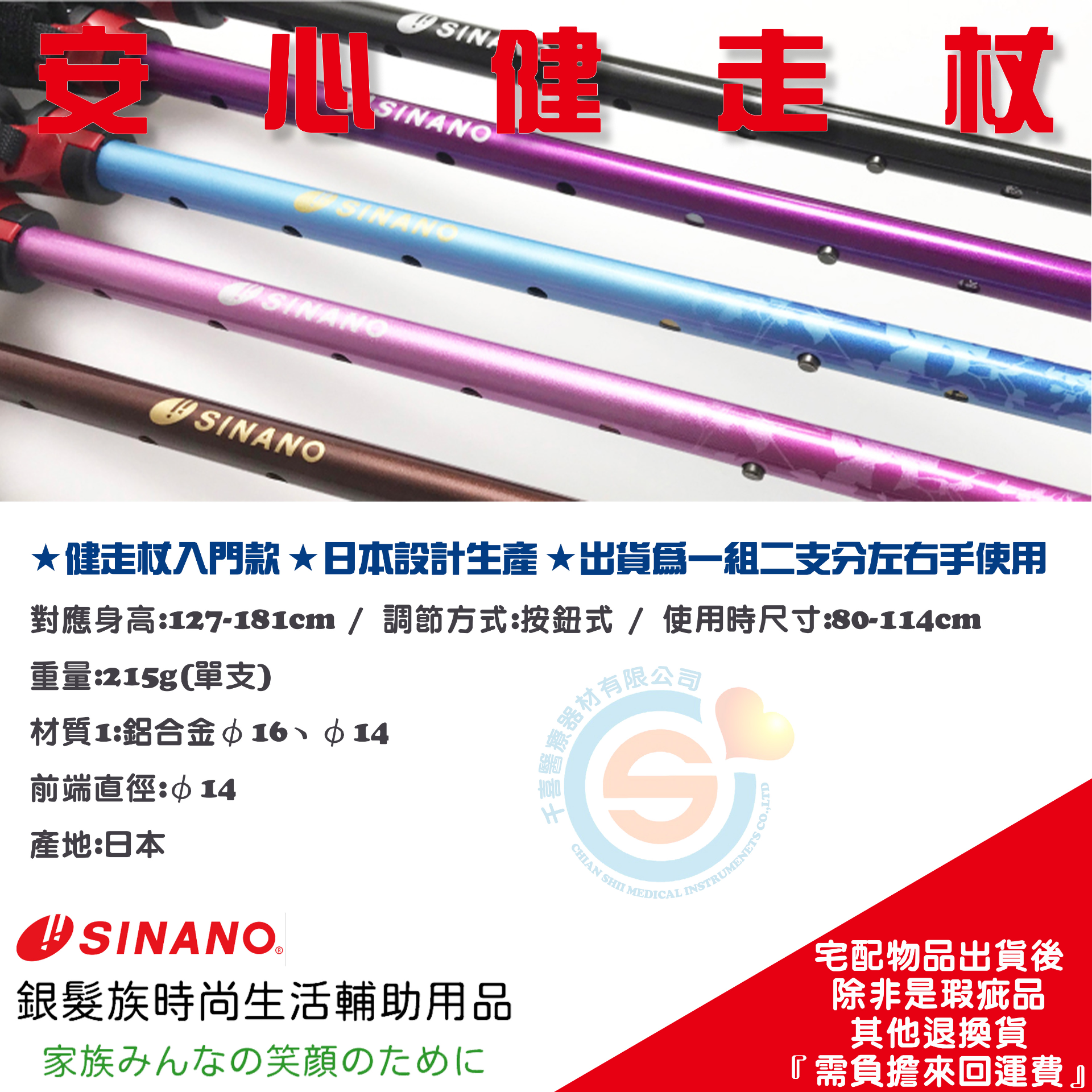 SINANO 安心健走杖 單手杖 手杖 鋁合金拐杖 單手拐 千喜醫療 日本製造柺杖 輔助行走杖 2入/組 分左右手