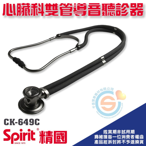 spirit 精國 CK-649C心臟科雙管導音聽診器《黑曜石》 千喜醫療 專利特殊橢圓形聽頭 心臟科成人/兒童聽診器