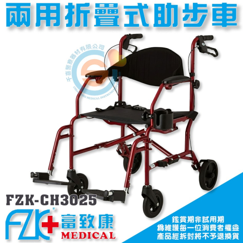FZK 富致康 FZK-CH3025 鋁合金助步車 兩用折疊式助步車 千喜醫療 鋁合金兩用助步車 輪椅 助步車 富士康