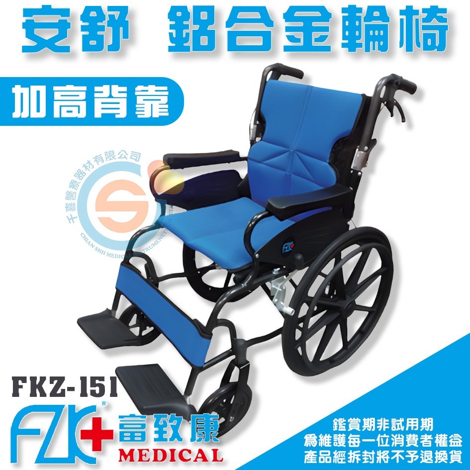 FZK 富致康 FZK-151 安舒鋁合金輕量輪椅 鋁合金輕量輪椅 中輪 加寬PU扶手 鋁合金輪椅 後折背輪椅 富士康