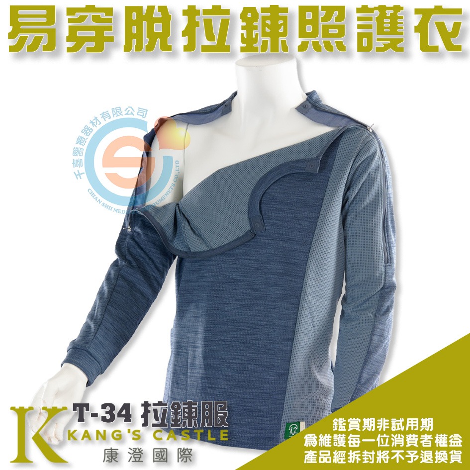 Kcwear 康澄 KC T-34易穿脫休閒服 肩關節攣縮不易伸展之長者 化療階段鎖骨下人工血管照護、 胸腔乳房術後照護