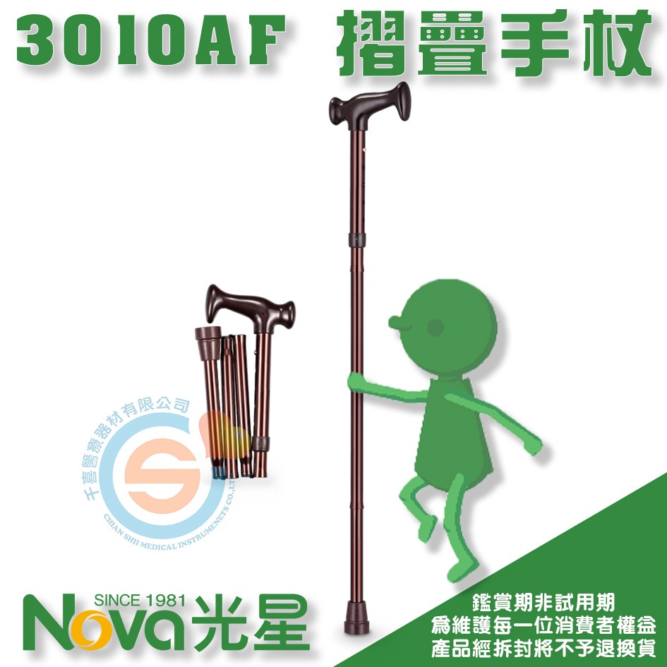 NOVA 光星 3010AF 經典摺疊手杖 單點手杖 單手柺 鋁合金單手柺 單支柺杖 伸縮柺杖 千喜醫療 台灣製造折疊柺