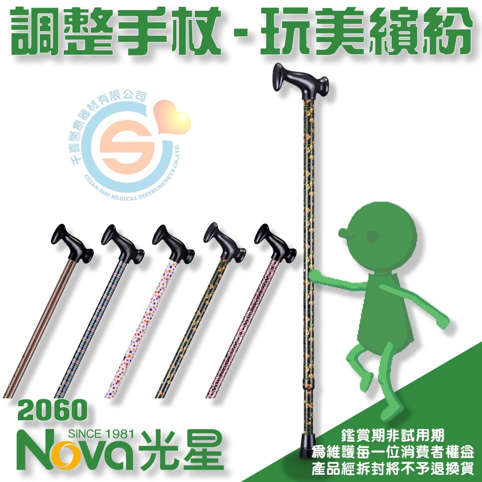 NOVA 光星 2060 調整手杖 玩美繽紛 單點手杖 單手柺 鋁合金單手柺 單支柺杖 伸縮柺杖 千喜醫療 台灣製造