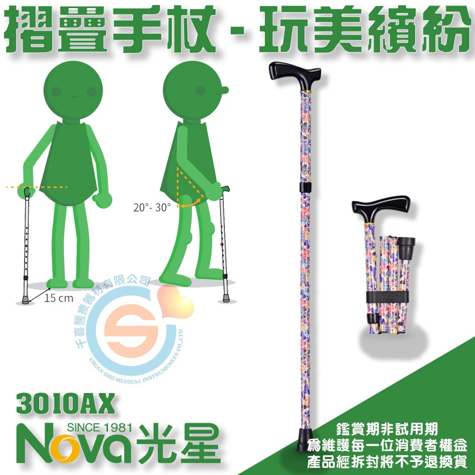 NOVA 光星 3010AX 摺疊手杖 - 玩美繽紛 手杖 單點手杖 單手柺杖 單支柺杖 折疊柺杖 輕便柺杖 台灣製造
