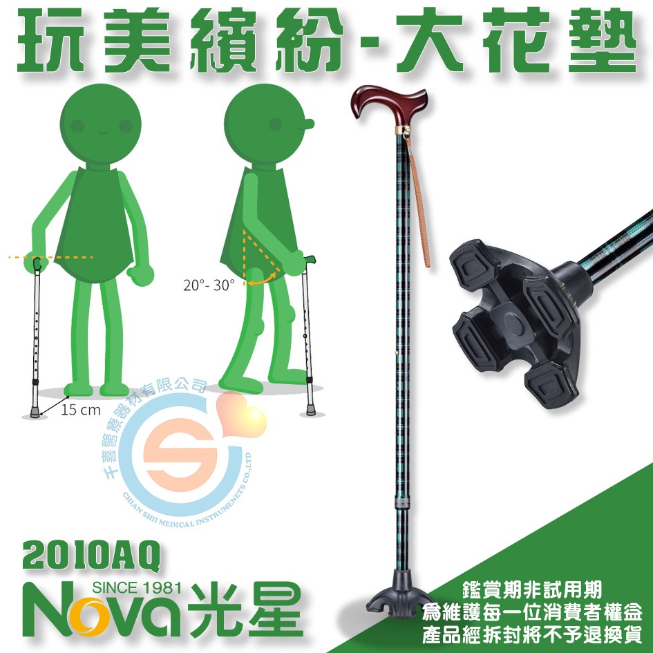 NOVA 光星 2010AQ 調整手杖 玩美繽紛-大花墊 單點柺杖 單手柺杖 大腳墊 單手站立柺杖 千喜醫療 台灣製造